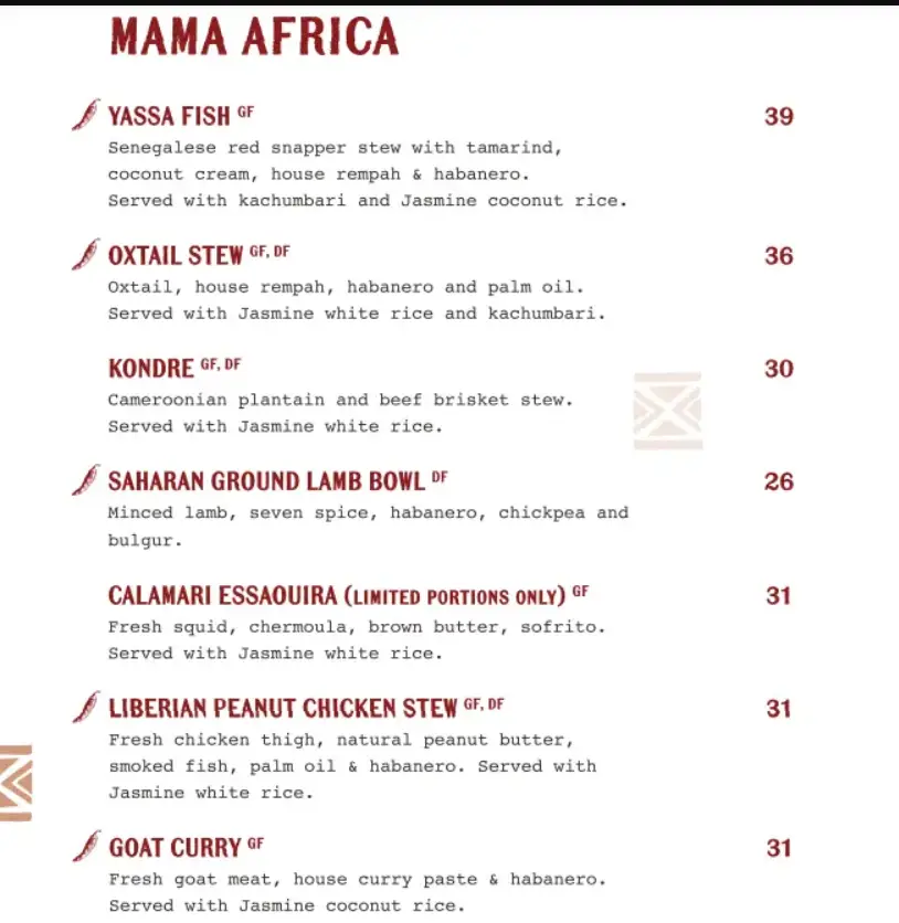 KAFE UTU MENU FROM MAMA AFRICA SINAPORE