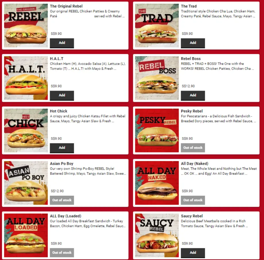 | The Original Rebel | SGD 10.90 |